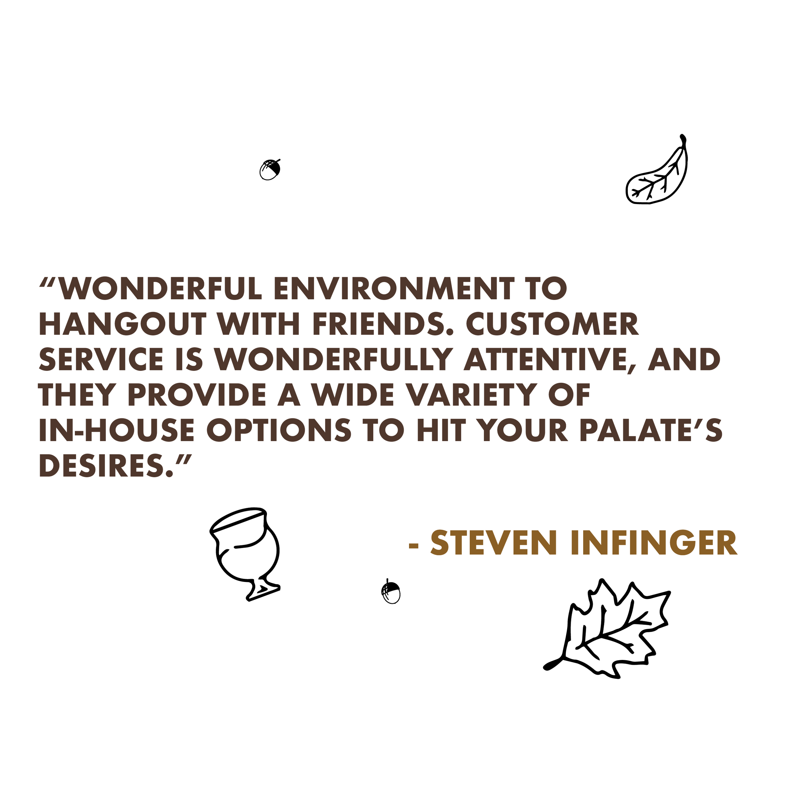 We try to keep things fresh and interesting at Oak Road. We have many rotating tap handles throughout the year. There is a Beer of the Month, Beer of the Week, Community Collaborations, Home Brewer Collaborations, and Seasonal releases.